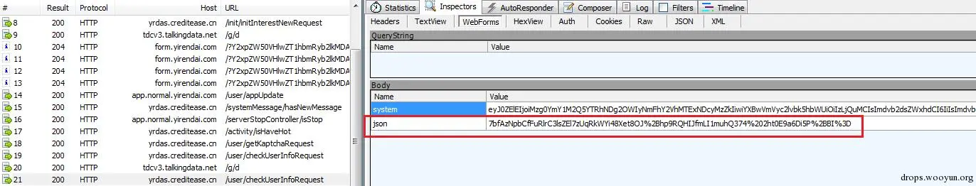 而与服务器通信时接口中的Jason字段也用了DES算法和密钥硬编码为“yRdappKY”: