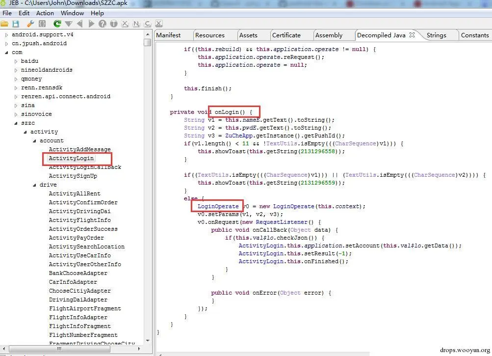 q字段是加密后的内容。逆向APP,从登录Activity入手: