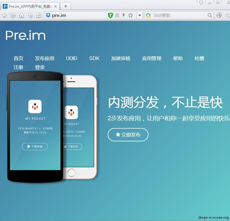 短信中的链接指向http://pre.im/xxxxflaw,Pre.im是一个免费的内测分发、应用托管工具网站,可以用于软件BUG测试和兼容性测试。制马人利用这种第三方网站提供的下载功能,上传恶意样本进行传播。