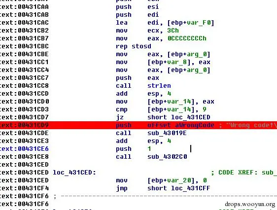 sub_43019E("Wrong code!\n"); //如果不是 就挂了。