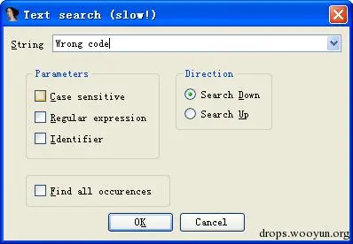 直接将exe拖入IDA中,然后查找字符串Your code 和Wrong code