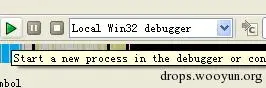 选择local win32 debugger,然后点击开始按钮进行调试: