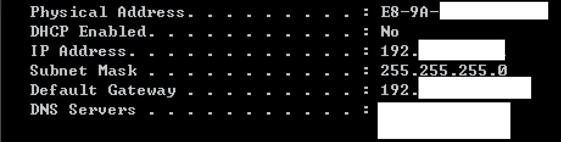 ipconfig /all结果截图: