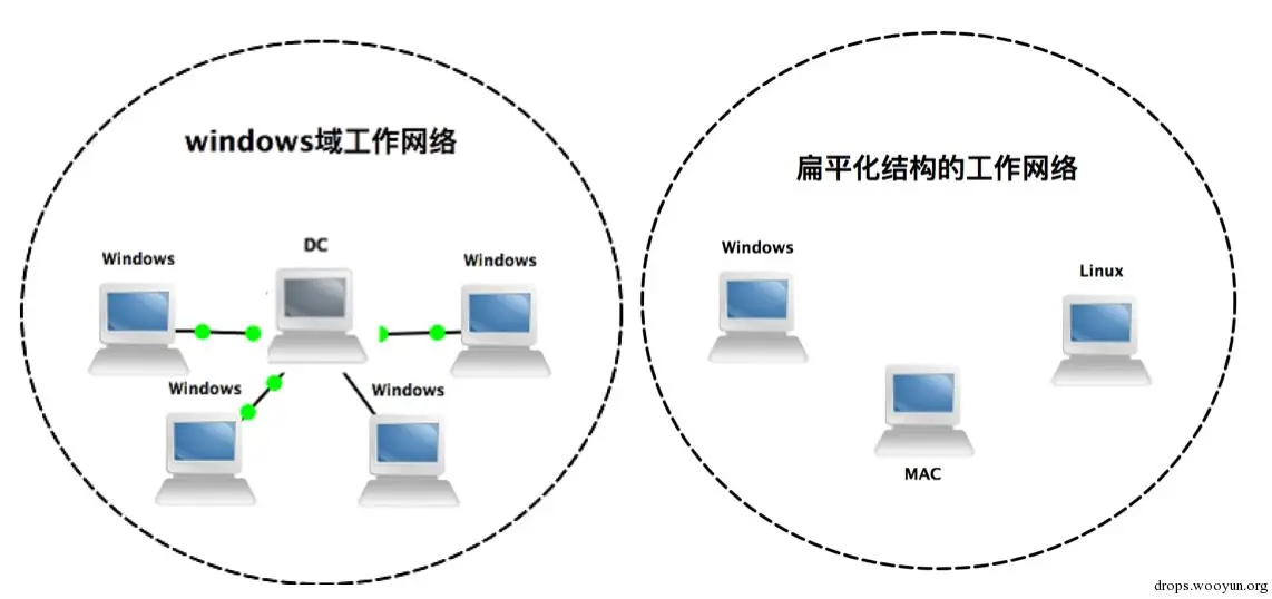 windows域与扁平化网络结构对比图