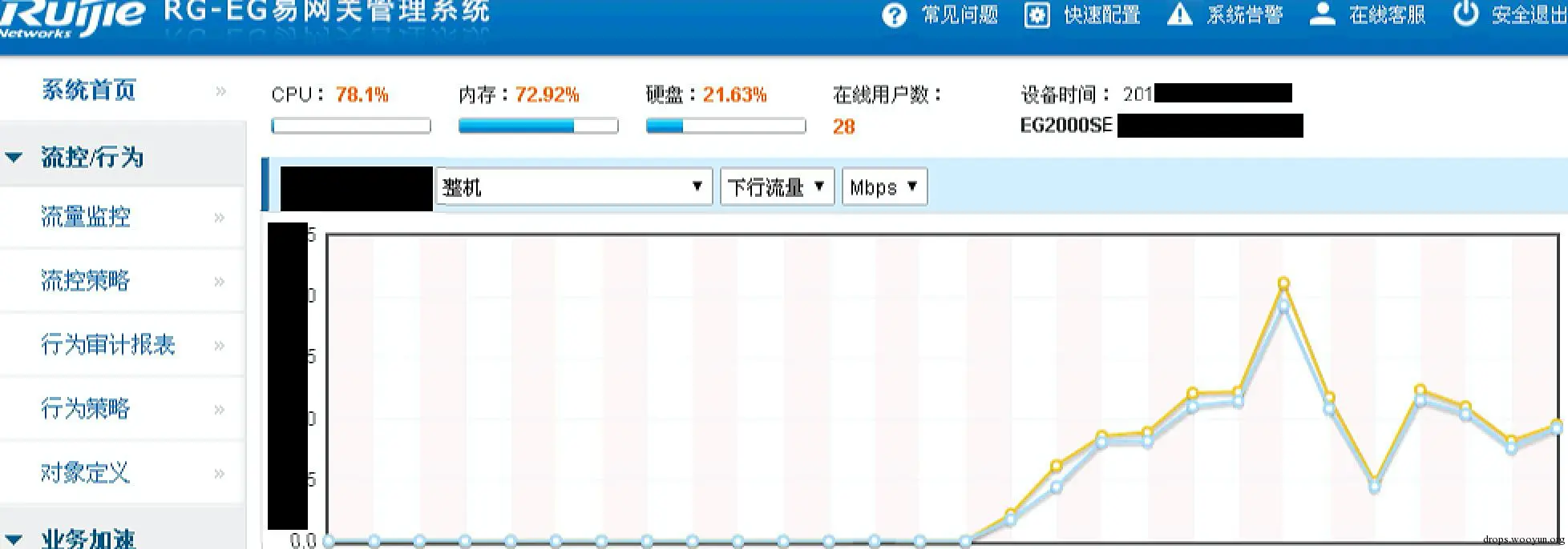 在想分析流量的时候,出现一个问题,原计划是使用ip flow,但是该协议是cisco私有协议,锐捷与华为都不支持,并且笔者对华为的IP STEAM不熟悉,没有很好的解决方案,在准备进行完整引导流量的准备时,发现锐捷的网关设备,可以生成流量报表。