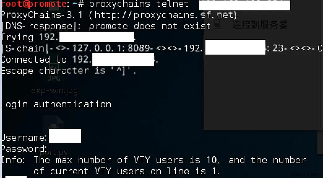 通过正向代理访问网关,成功telnet连接到设备: