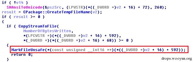 在MS14-060这个补丁中,微软通过添加MarkFileUnsafe函数来弥补这个漏洞: