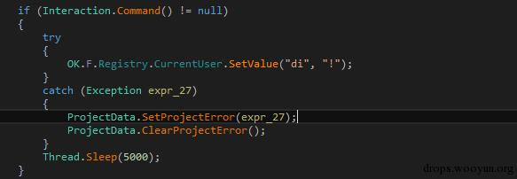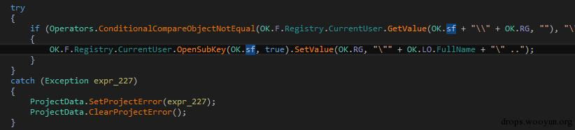 在HKEY_CURRENT_USER中设置一个值di用于判断是否已经感染过该系统: