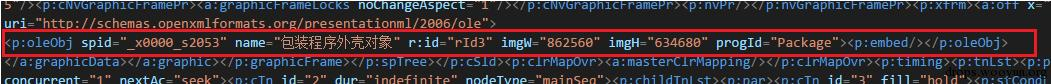 在video.ppsx \ppt\slides\_rels\ slide1.xml.rels中指定了rId3对应的是前面提到的oleObject1.bin