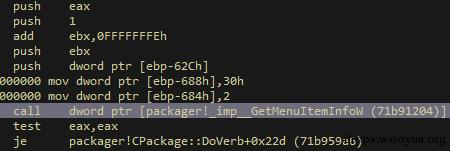 调用GetMenuItemInfo时,第二个参数uItem代表菜单的位置,这里参数为1,也就是右键菜单的第二项,对于exe文件,右键菜单的第二项是“以管理员权限运行”