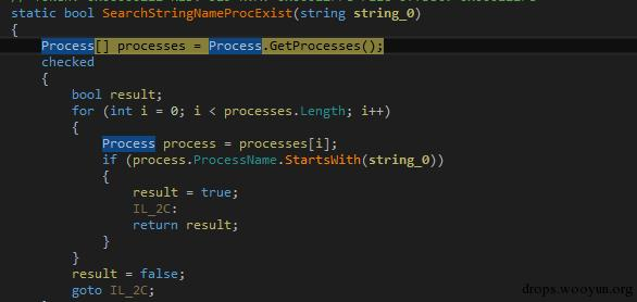 经过去混淆后,我们可以清楚地看到其程序代码,首先遍历是否有杀软进程: