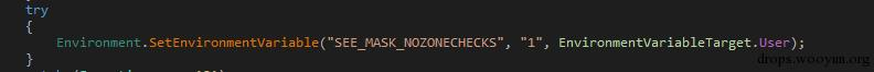设置HKEY_CURRENT_USER\Environment\SEE_MASK_NOZONECHECKS的值为1,这是用于关闭附件管理器检查的: