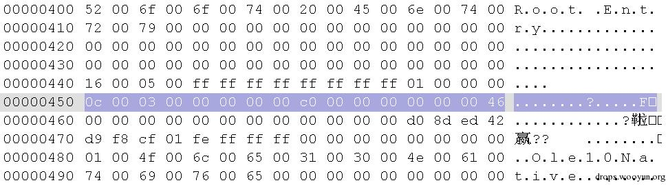 复合文档对应的CLSID 如下图,是{0003000c-0000-0000-c000-000000000046},对应的是CLSID_OldPackage,那么根据上面的分析,CPackage::Load调用CPackage::PackageReadFromStream进一步处理,PackageReadFromStream会通过CPackage::EmbedReadFromStream在临时目录释放嵌入的PE文件。