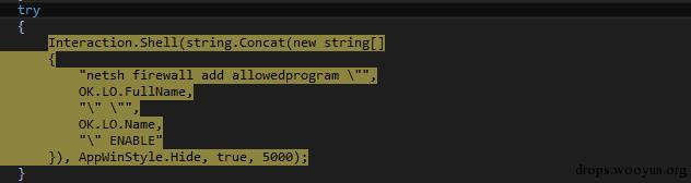 netsh firewall add allowedprogram "C:\Users\***\AppData\Local\Temp\svhost.exe" " svhost.exe" ENABLE