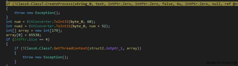 接着以Suspend方式启动svhost.exe,将之前解密出来的PE注入,并恢复线程。