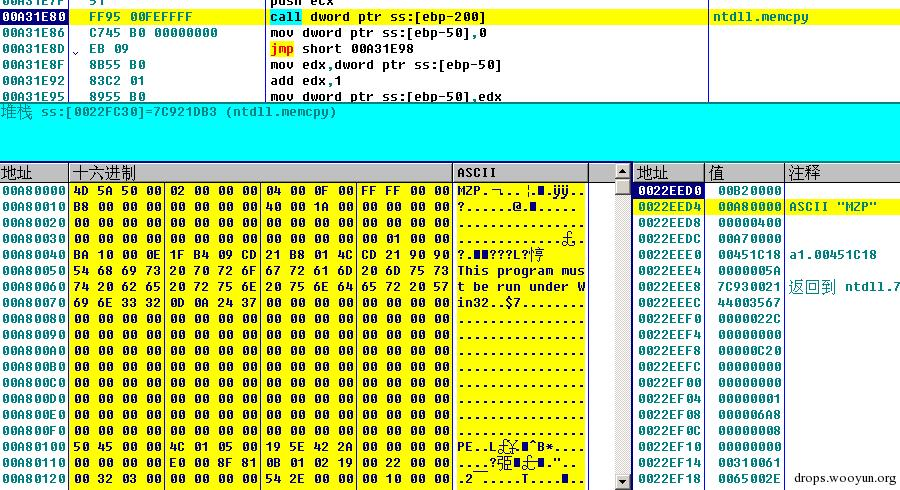 我们把数据dump出来,发现代码会从远端下载文件到本地执行,并且还会判断一下文件是否是有效的可执行程序——典型的下载者木马: