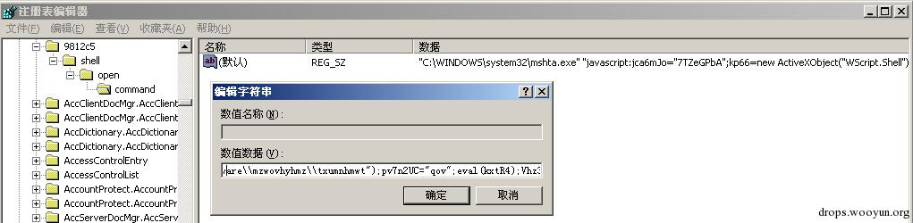这是一段短小精悍的脚本,但系统会根据这段短小的脚本的指令,再次访问注册表去执行注册表中的另一段恶意代码: