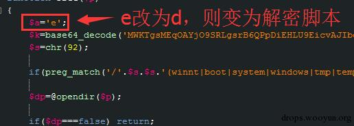 细读代码之后恍然大悟——并没有实现……这段代码的加密方式采用了对称加密算法,准确的说是循环异或加密。更加“人道主义”的是——这个php的加密代码其实是“两用”的,只要修改脚本中的一个参数,整个脚本立刻成为了解密脚本。可以直接将加密的文档解密回去:
