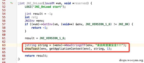 此so文件以“../../../../../../../../../../data/data/mobi.mgeek.TunnyBrowser/files/libdolphin.so”的形式存在恶意ZIP文件中。海豚浏览器解压恶意ZIP文件后,重新的libdolphin.so就会覆盖掉原有的so文件,重新运行海豚浏览器会弹出Toast提示框:
