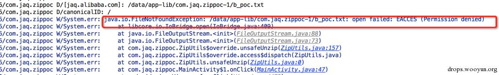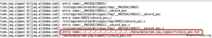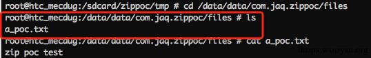 此ZIP文件存放在SD卡中,想让解压出来的所有文件也存在SD卡中,但是a_poc.txt文件却存在了应用的数据目录中: