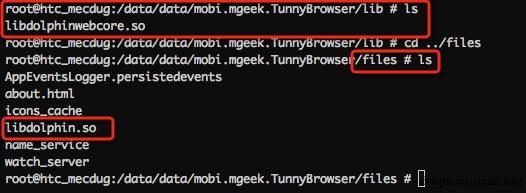 2、动态链接库文件libdolphin.so,并没有放在应用数据的lib目录下,而是放在了files目录中: