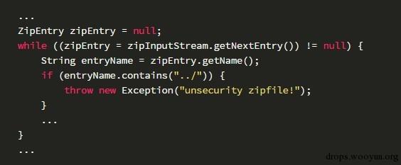 也可以使用java.util.zip包中的ZipFile类,直接读取Zip包中的所有entries,然后检查getName()的返回值是否包含“../”:
