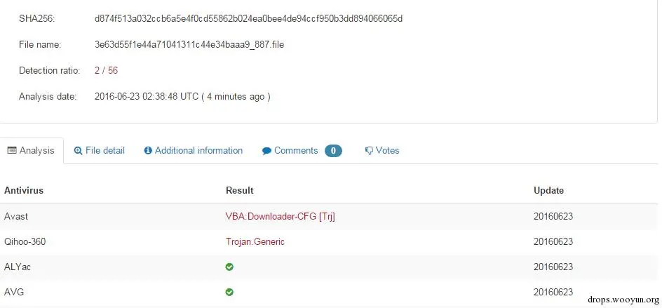 我们得到的木马样本基本信息如下,2016年6月15日被提交到VirusTotal上。