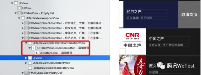 左滑操作后,UITableView的层级结构如下图: