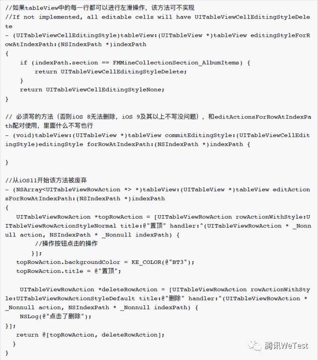 2、如果左滑有一个或多个操作按钮,iOS8-10 可使用如下两个delegate
