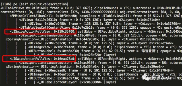 当左滑一个cell后,直接操作左滑另一个cell,这个时候tableView上会有两个UISwipeActionPullView,此时tableView的部分view层级如下图所示:
