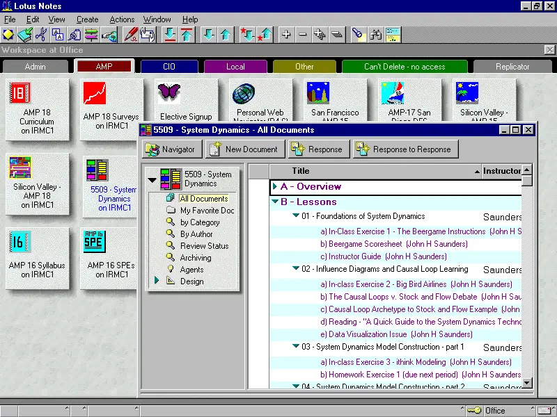 刚参加工作的时候,单位里用Lotus Notes做办公自动化软件的平台,于是我学习了怎么在Notes下开发应用。后来还用这个玩意给一些银行开发过一些办公自动化流程的应用。我有一个同学相当痴迷于这个平台。现在看来,有点非主流了。