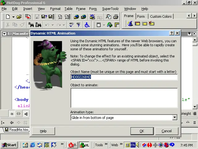 在大三的时候,Java和WEB出现了,系上接到了一个项目,需要用HTML+Java的方式做一些在线的教学课件。但是,当时连一本HTML的书都没有,又上不了网,我只能在看一些盗版光盘里的HTML的文件的例子来学习。那时,基本上是用notepad来写HTML,这让我对HTML打下了非常扎实的基础。后来知道有一个叫HotDog的专门用来写HTML的软件,用了一段时间。