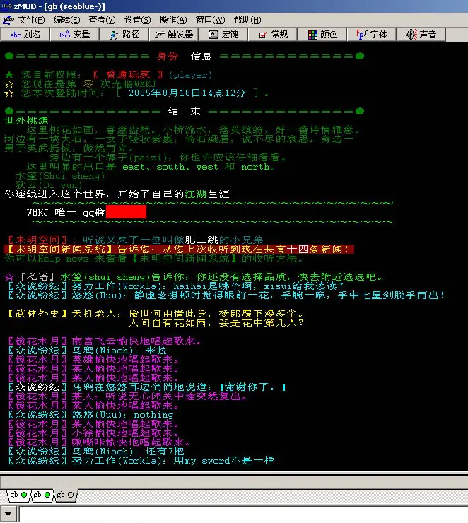 Zmud——当时的网游戏。也是需要练级。在大四和刚工作头一年疯玩过Zmud,之后,对于今天的这些大量的网游没有什么兴趣了。