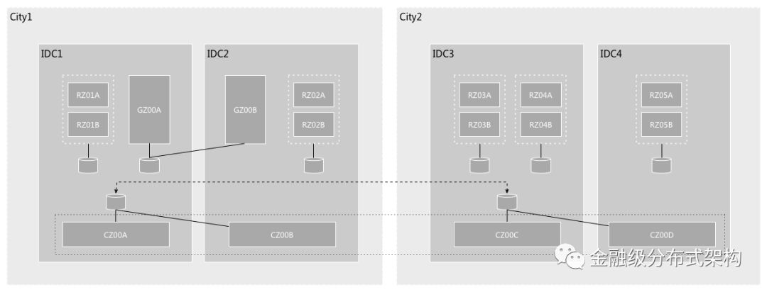 CZone(City Zone):同样部署了不可拆分的数据和服务,也会被 RZone 依赖。跟 GZone 不同的是,CZone 中的数据或服务会被 RZone 频繁访问,每一笔业务至少会访问一次;而 GZone 被 RZone 访问的频率则低的多。