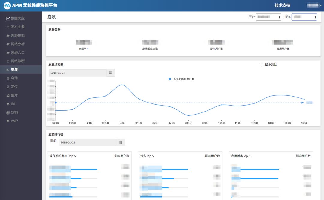我们将携程App核心性能指标集中为8类:网络性能、崩溃、启动加载、定位、图片、CRN、IM和VoIP(图6),基础维度包括系统平台和App版本。