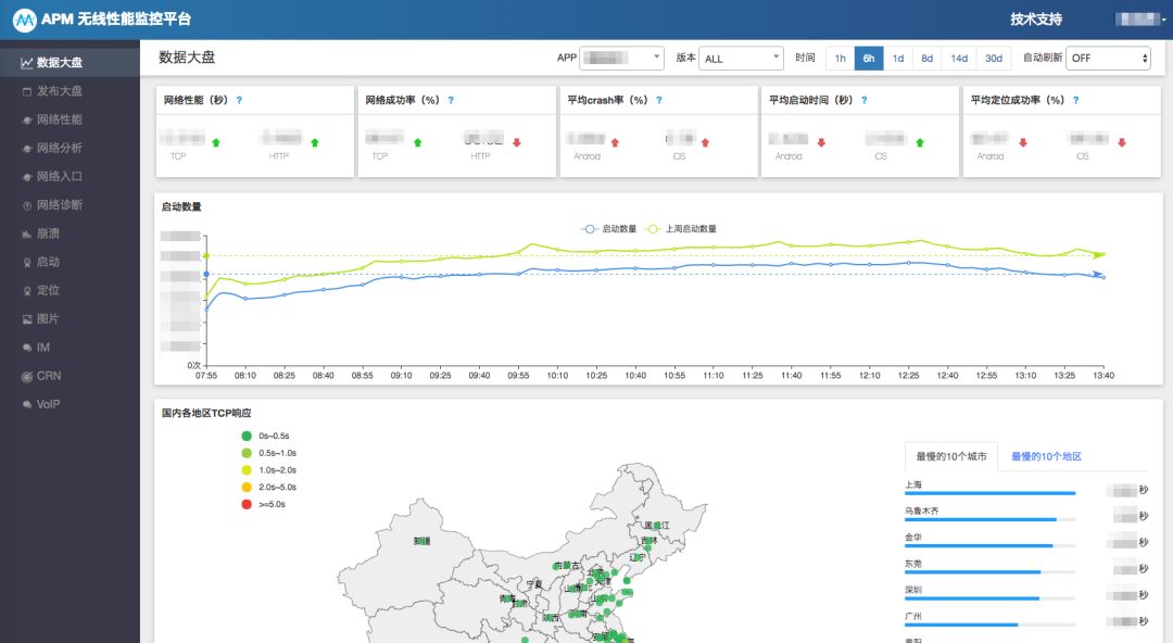 定位对App的经纬度定位和城市定位的成功率、平均耗时和请求量进行监控。