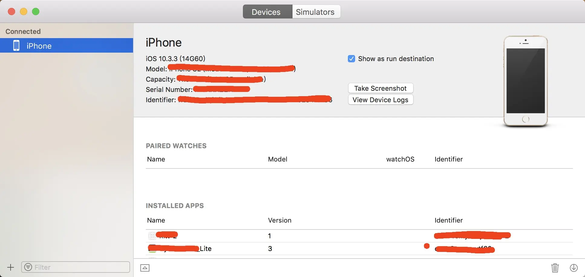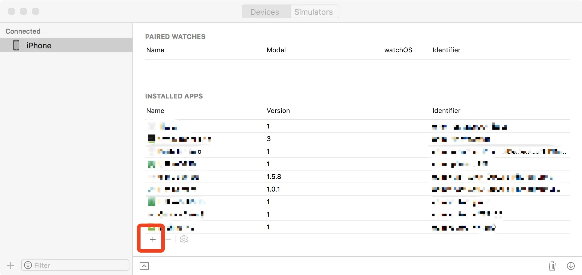 - 选择Devices, 将手机连接到MAC 电脑上。就会出现如图所示情景。
