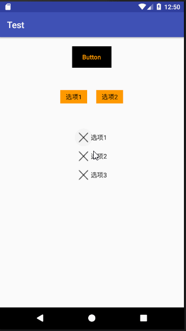 可以看到基本上和上面的Button是一样的,只不过RadioButton的选取用的是android:state_checked="true/false"这个属性,之后在布局文件里设置一下,就可以实现下面的效果。