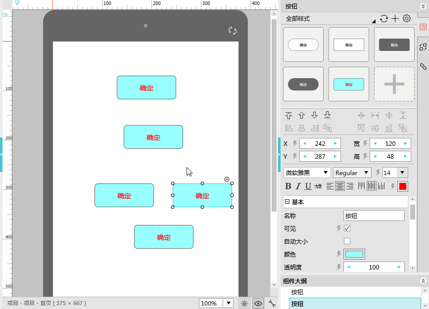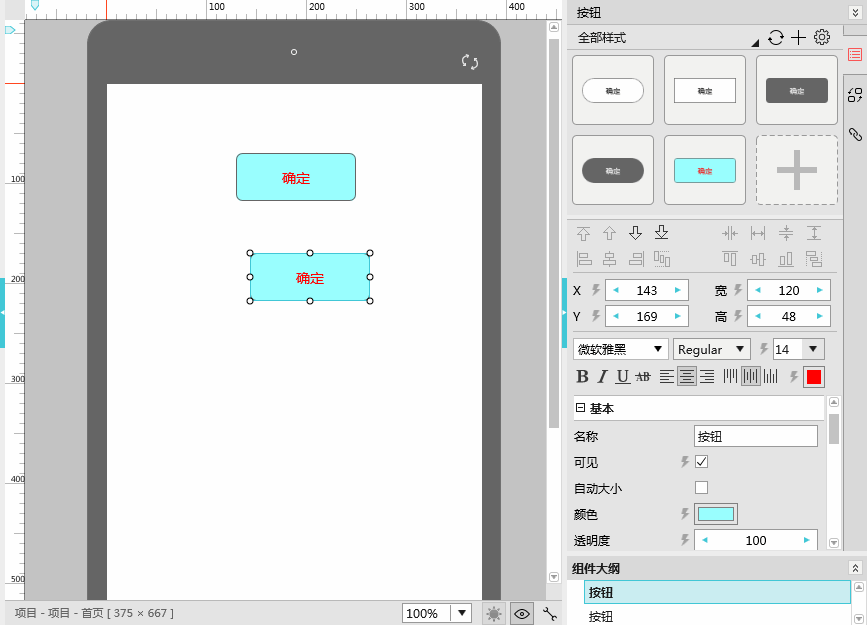 保存样式:选中组件,设置好该组件的外观后,点击图中的加号,即可把组件当前的外观属性保存起来。