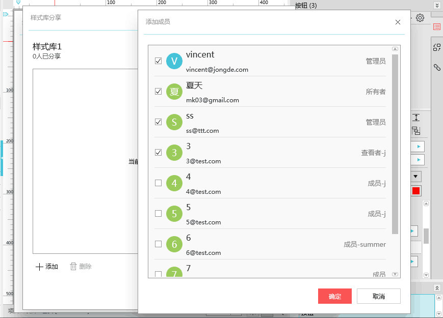 分享样式库:可以添加或删除分享成员,成员来源为企业内部添加的成员账号。企业版的成员用户还可以编辑共享的组件样式。