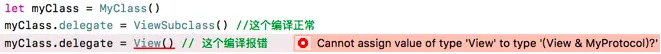 在 Swift 4 中,可以把类(Class)和协议(Protocol)用 & 组合在一起作为一个类型使用。