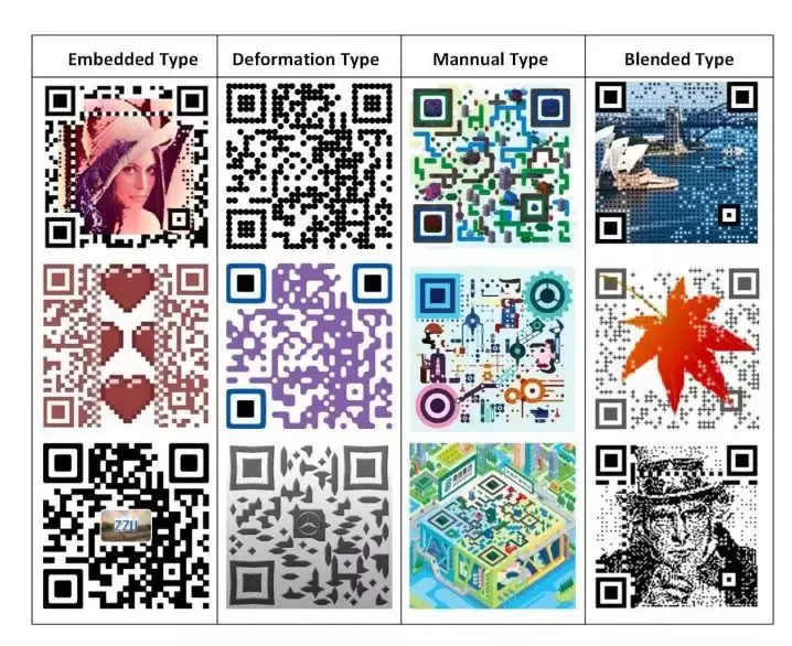图 1:4 种美化二维码的已有方法。