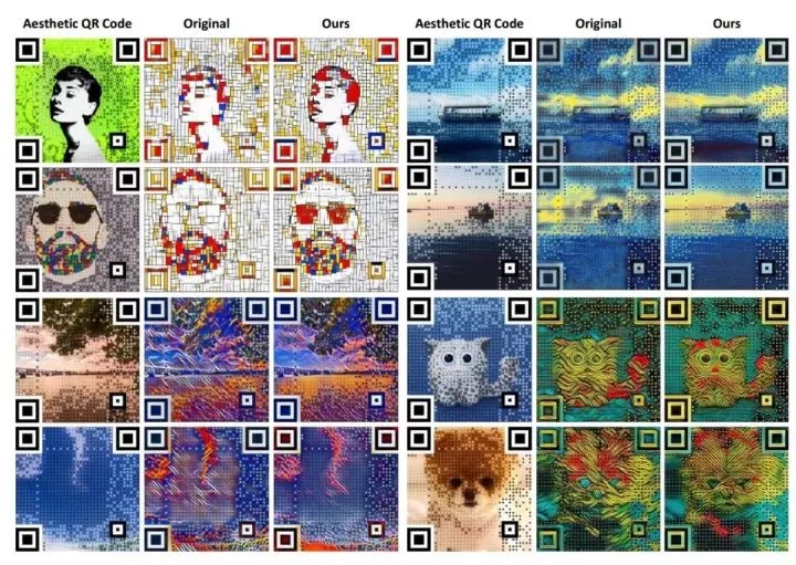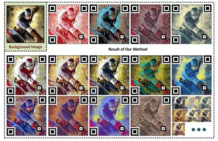 图 3:一些 SEE 二维码的实例,看起来就像是艺术品;并且用户可根据单一的背景图像生成不同艺术风格的美化图像。