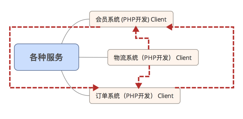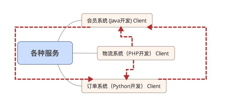 服务与服务之间可能会是不同的开发语言或相同语言开发,他们的调用方式依旧只可以通过http去获取,或者比较流行的Restful Api的形式,无论是在性能与开发的过程中都是很笨的办法。
