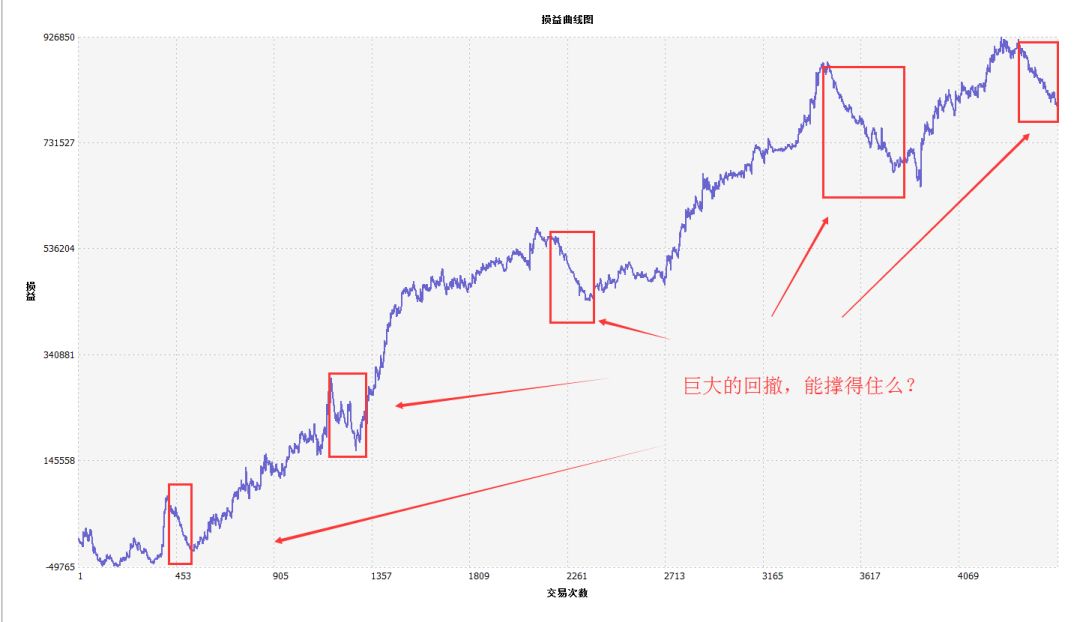 还有一个问题就是,策略的回测结果,往往是跑在一个较长的时间周期上的,用我这个策略跑一年,你就能月入百万此类。不过,这个过程中,虽然总体是赚钱的,但短线的一些回撤,会有扛不住而爆仓的情况,这是隐藏的一些风险。