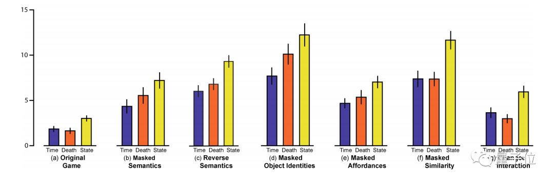 这一次,人类平均通关时间7.6分钟,死亡次数14.8,游戏路径探索达11715种。结果表明,视觉相似性是人类在游戏中第二类重要的知识。