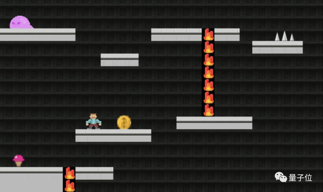游戏中粉色的怪物和地刺路障,替换成有正面含义的金币和冰淇淋;而梯子、钥匙和大门,分别被替换成有负面含义的火焰、地刺路障和粉色怪物。
