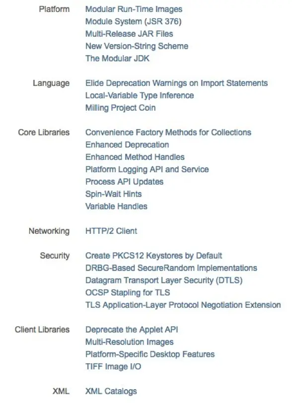 通过5中的JEP也可以看出有9带来了哪些变化,不过官方还是给了一个分类如下:
